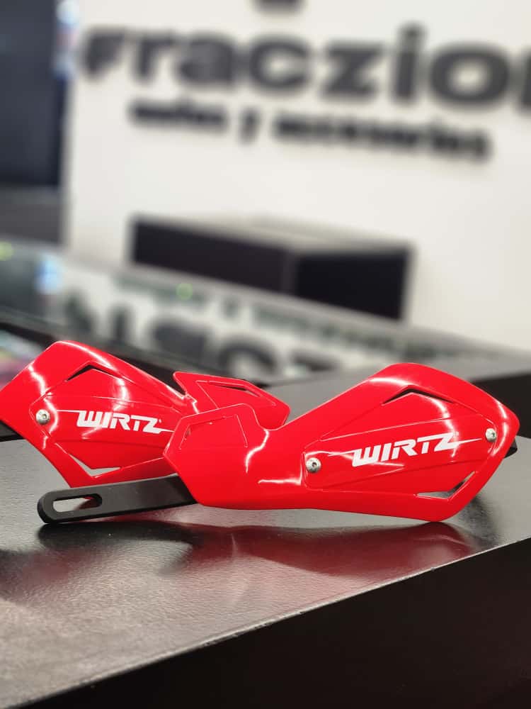 Protección robusta para tus manos: alma interna de aluminio que absorbe impactos de ramas, piedras y golpes. Incluye dos juegos de plásticos intercambiables para personalizar su apariencia, y adaptadores específicos para manubrios Wirtz de 22 mm y 28,6 mm.