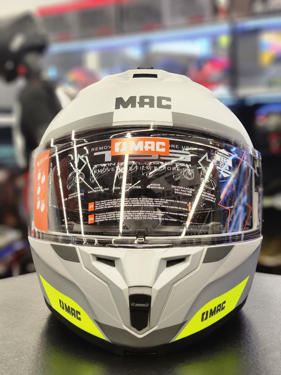 Tiene doble visor (normal + solar interno), con tratamiento antirrayas y protección UV.