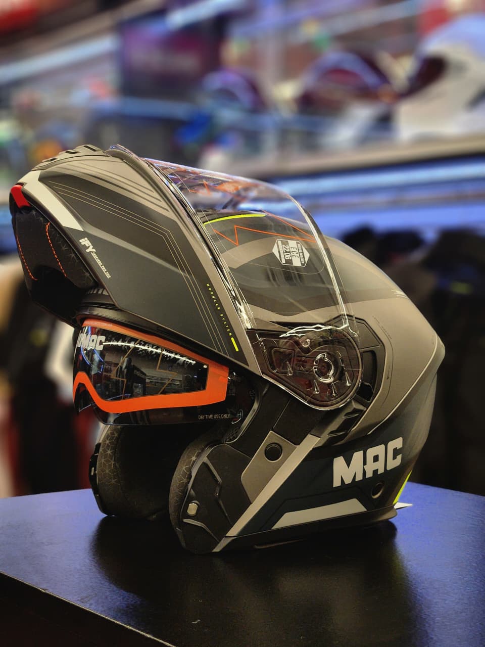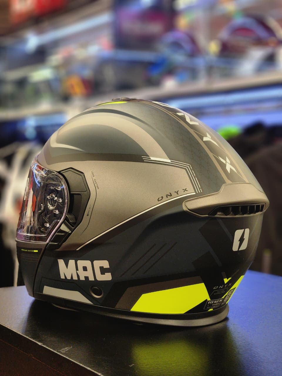 El Casco MAC 917 Onyx Genius Negro / Amarillo / Mate es un casco modular (rebatible) orientado al uso urbano, que combina practicidad, confort y un diseño moderno con detalles en amarillo mate de alta visibilidad. Está fabricado en ABS de alta resistencia, cuenta con EPS de alta densidad para una correcta absorción de impactos y cumple con la homologación ECE 22.06. Incorpora doble visor, uno externo con tratamiento antirrayas y protección UV y un visor solar interno, ideal para adaptarse a distintas condiciones de luz. Su sistema de ventilación con entradas superiores e inferiores más extractores traseros mejora la circulación de aire, mientras que el interior hipoalergénico, desmontable y lavable, con espumas de corte láser, garantiza un calce cómodo. Completa su equipamiento con cierre micrométrico de liberación rápida, siendo una opción muy versátil y segura para el uso diario.
