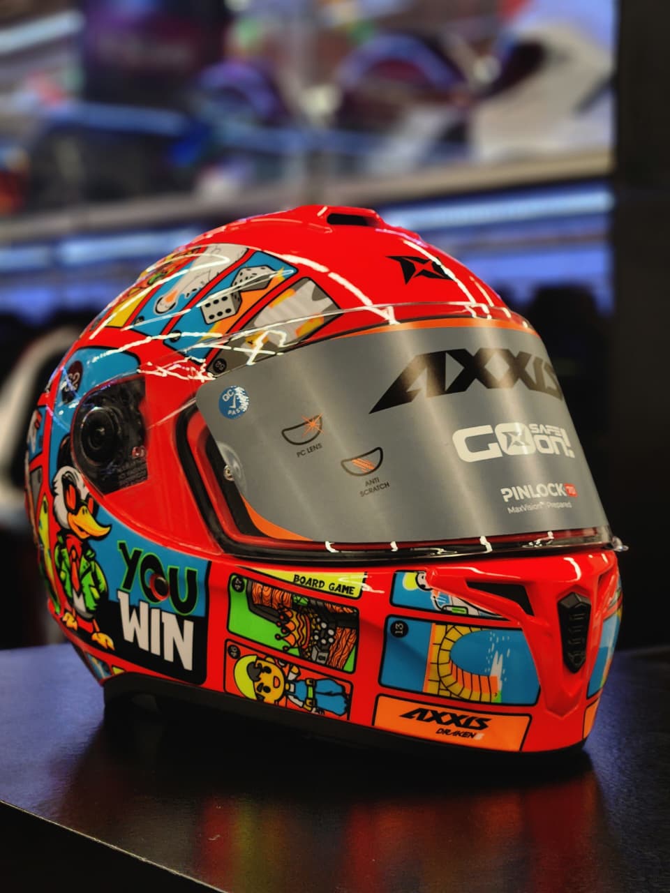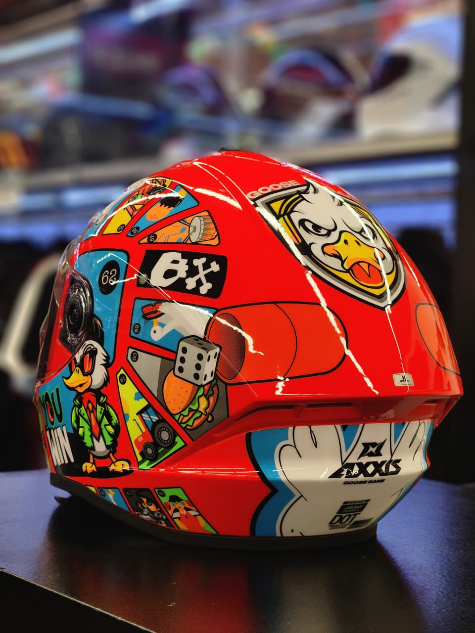 El Casco AXXIS Draken S Goose Game A5 Brillo es un casco integral de estilo deportivo que combina un diseño llamativo con un alto nivel de protección y confort. Cuenta con calota de termoplástico inyectado, homologación ECE 22.06 y cierre micrométrico, ofreciendo seguridad confiable para el uso diario y rutas. Incorpora visor de policarbonato antirrayas, preparado para Pinlock (no incluido), ventilación frontal y trasera para una correcta circulación de aire, y un interior hipoalergénico, desmontable y lavable, que asegura comodidad incluso en trayectos largos, todo con un acabado brillante que resalta su estética moderna y agresiva.