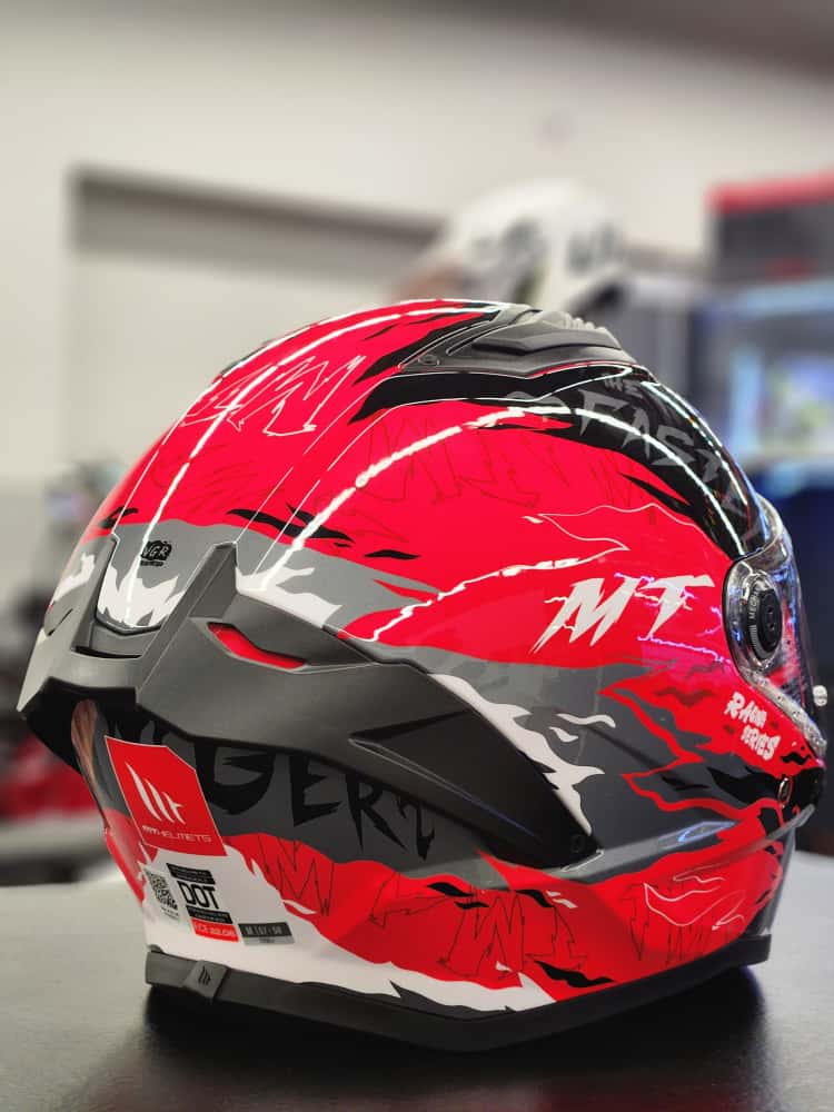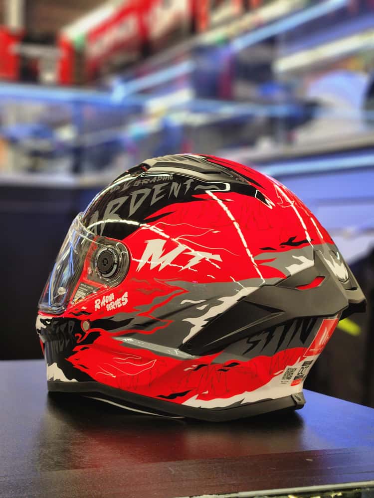 Incluye visor de policarbonato preparado para Pinlock, sistema de cambio rápido MT-QVSS, deflector nasal y cierre micrométrico.