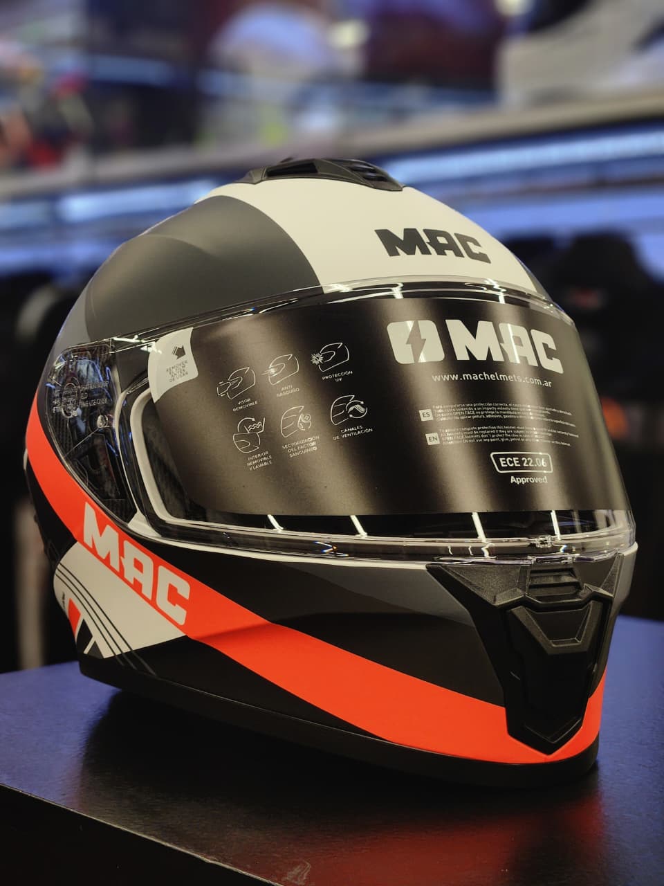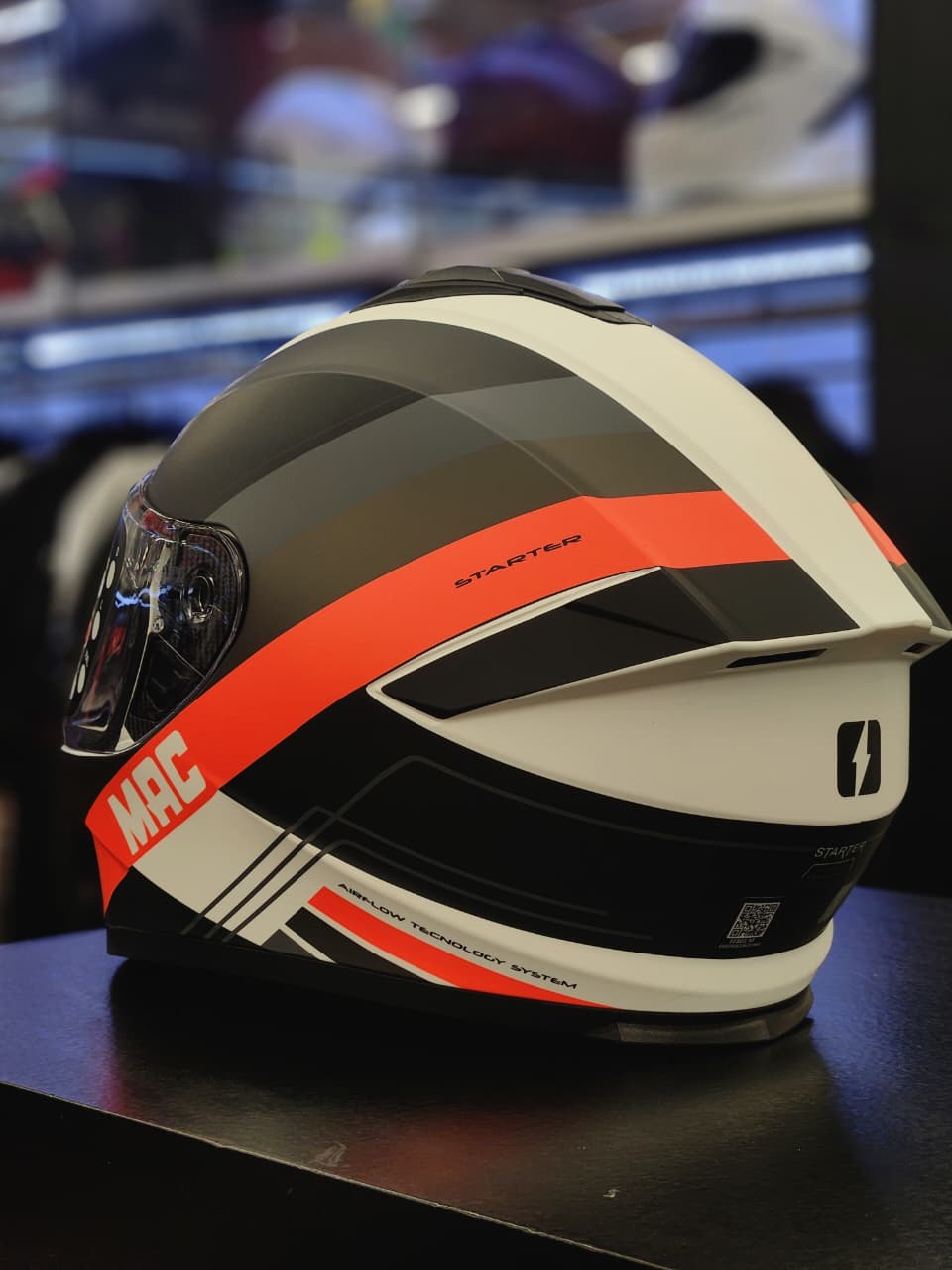 El MAC Started Winexzor Matt White Orange es un casco integral pensado para el uso diario, que combina seguridad, confort y un diseño deportivo. Su gráfica en blanco mate con detalles en naranja aporta alta visibilidad y un estilo moderno, ideal tanto para ciudad como para ruta.