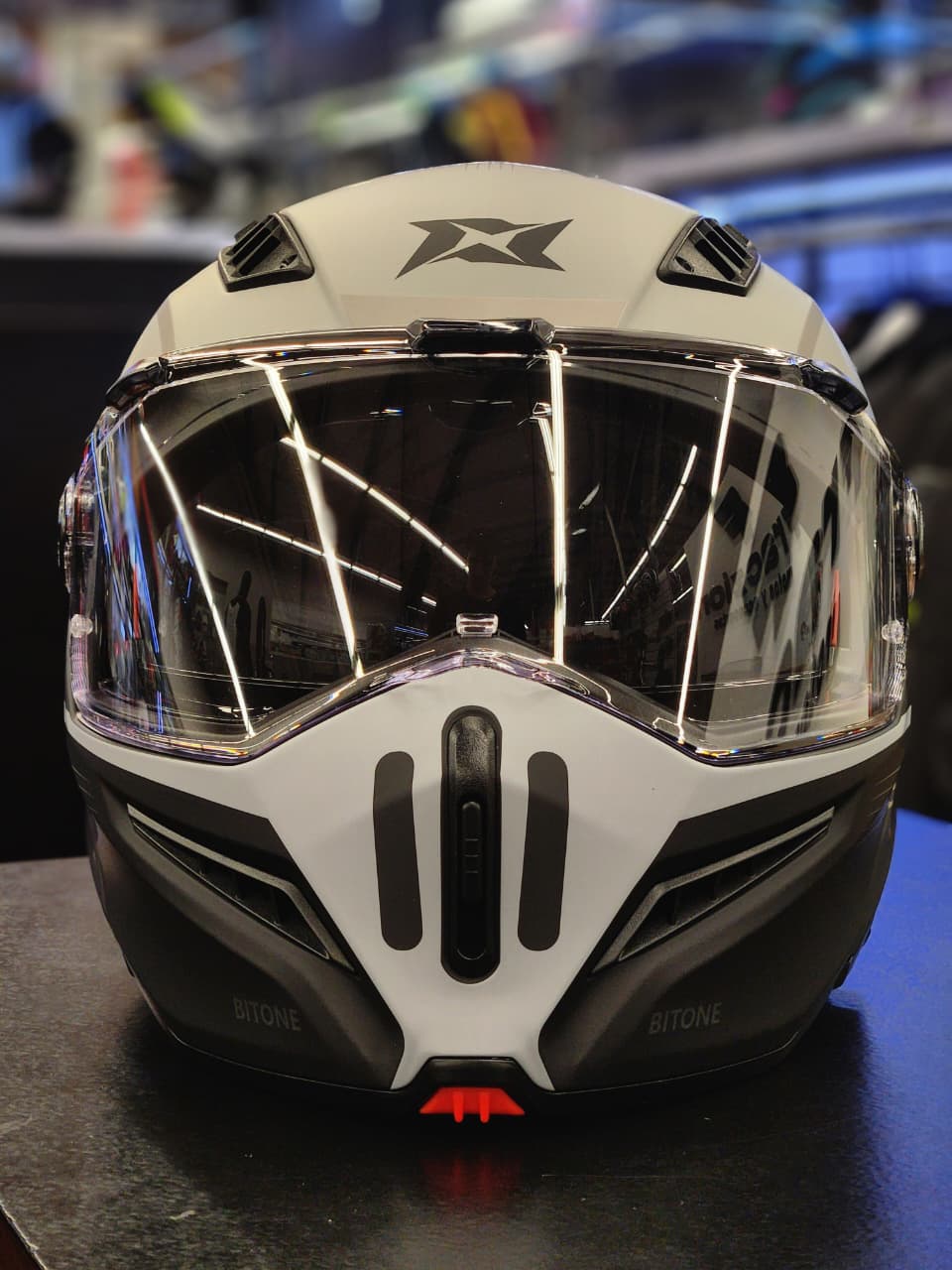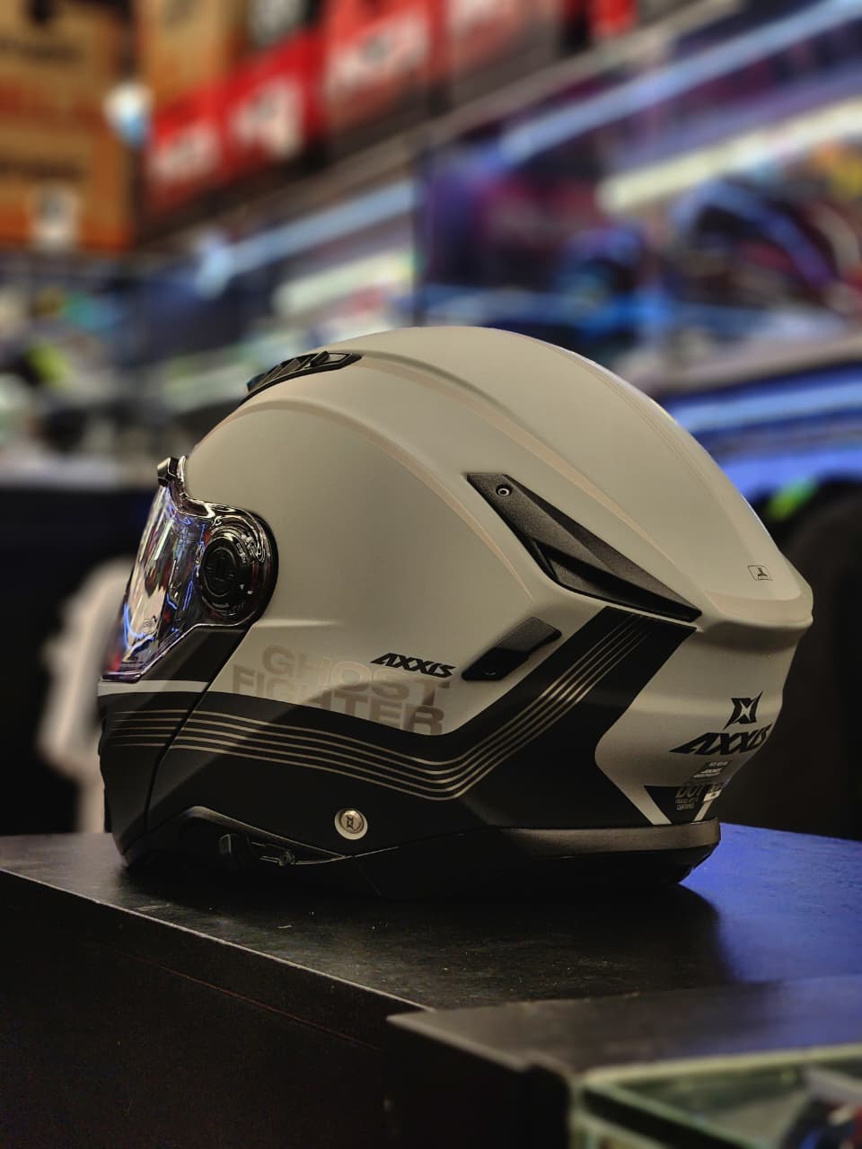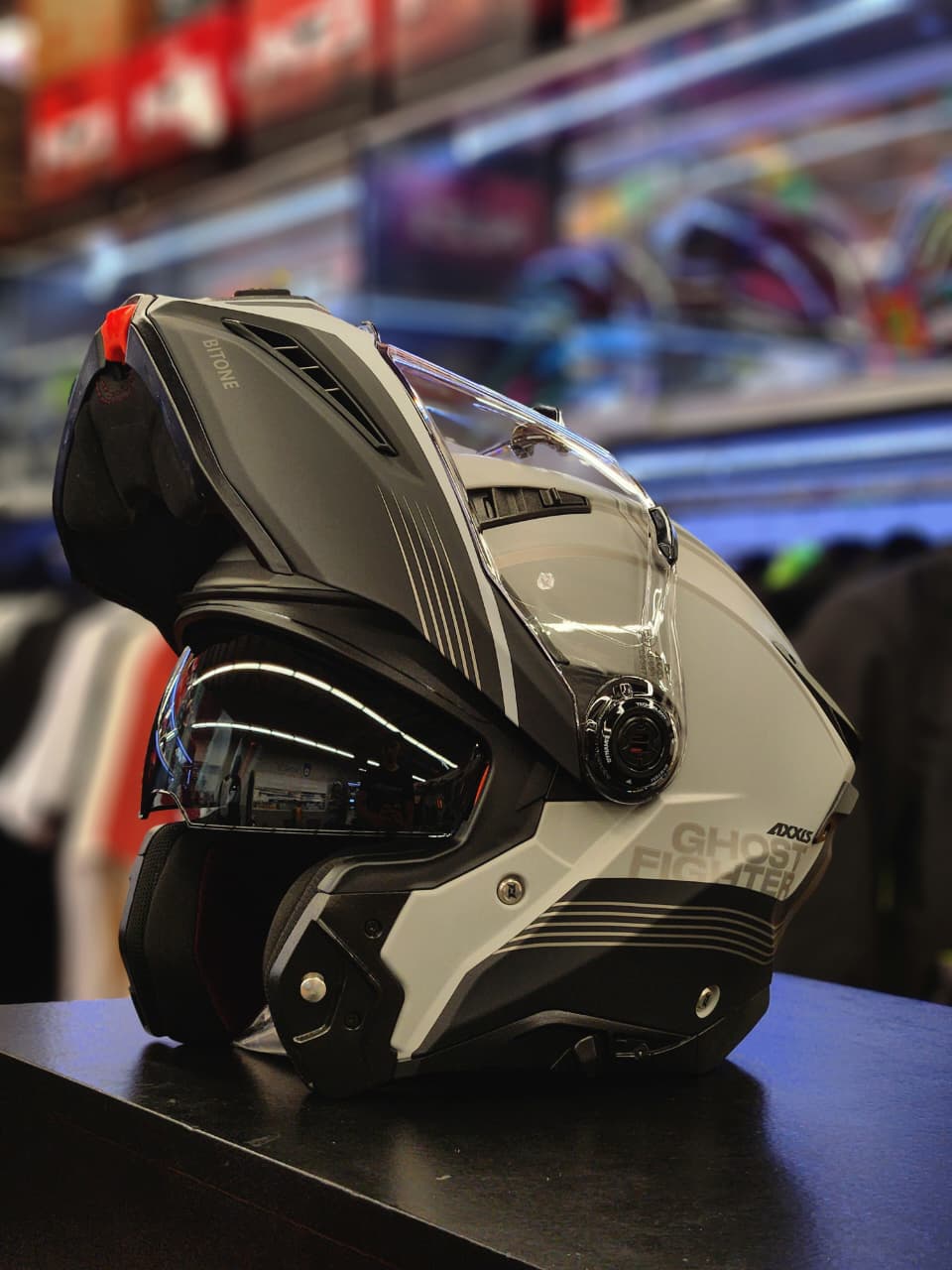 El Axxis Ghostfighter Bitone C2 Mate es un casco modular/rebatible con una estética streetfighter fuerte y moderna, pensado para quienes quieren combinar versatilidad, seguridad y estilo en un solo casco. Su calota está fabricada en HIRP (High Impact Resistant Polymer), un material que ofrece buena resistencia a impactos con un peso controlado, y cuenta con homologación ECE 22.06 P/J, lo que permite utilizarlo tanto en modo integral (cerrado) como abierto (mentonera levantada) de forma segura.