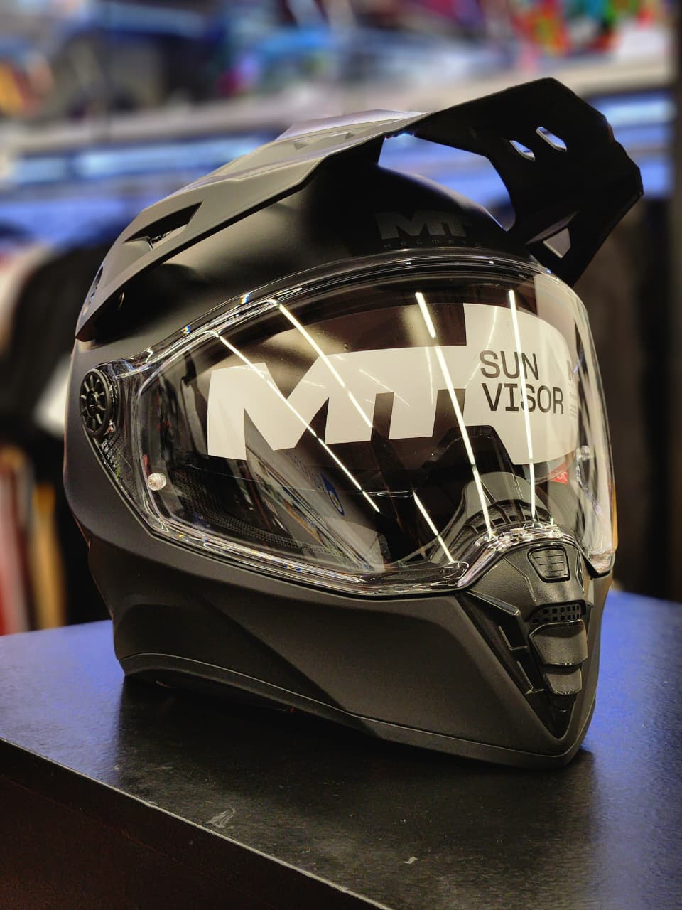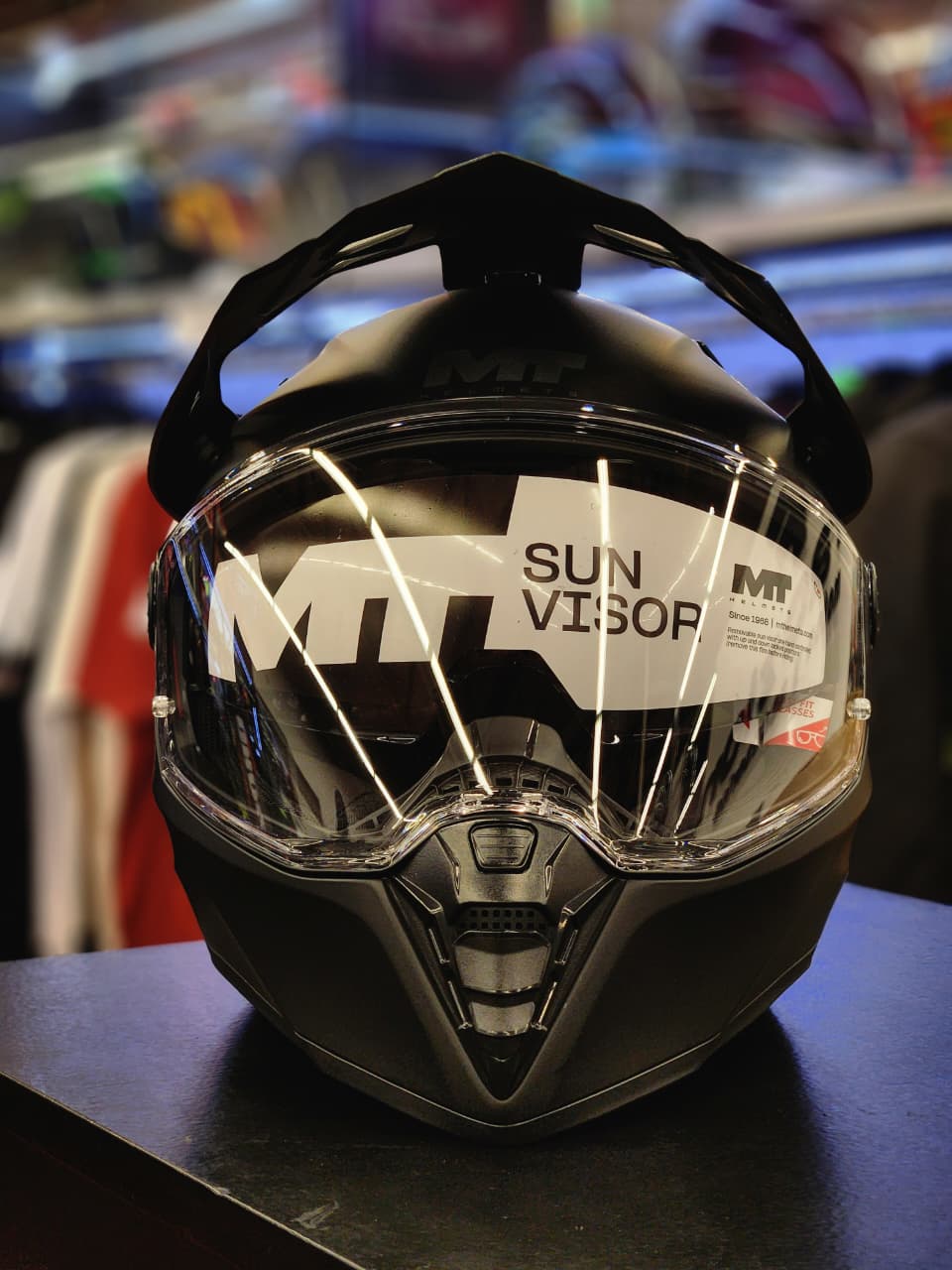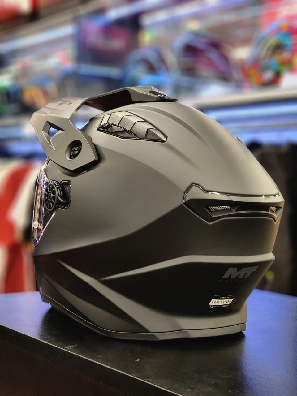 El MT Track SV Pure A1 Mate es un casco dúo-sport/trail desarrollado para motociclistas que alternan entre la conducción urbana, la carretera y salidas off-road ligeras, combinando protección, funcionalidad y un diseño moderno y versátil. Su calota está construida en HIRP (High Impact Resistant Polymer), un polímero termoplástico inyectado que ofrece buena resistencia a impactos manteniendo un peso contenido y confort en uso prolongado. El casco cumple con la homologación ECE 22.06, lo que asegura que cumple con estándares exigentes de seguridad para uso en varios tipos de rutas.