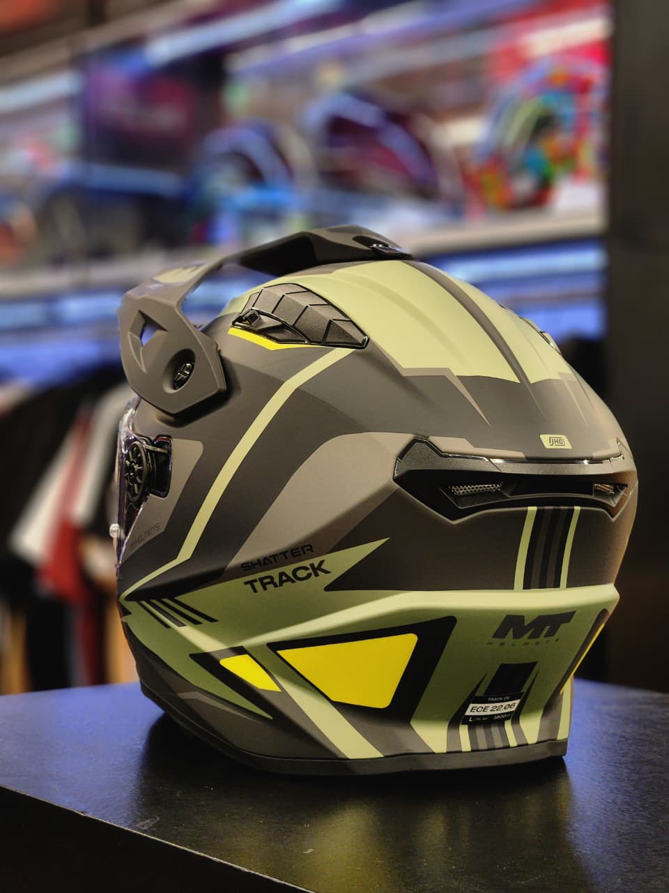 El MT Track SV Shatter B12 Brillo es un casco integral/dúo-sport diseñado tanto para trayectos urbanos como para aventuras más exigentes donde alternás entre rutas y caminos off-road. Está construido con una calota de polímero HIRP (High Impact Resistant Polymer) que ofrece una combinación equilibrada de resistencia y ligereza, cumpliendo con la homologación ECE 22.06, lo que garantiza que supera las pruebas de seguridad requeridas para uso en ruta y ciudad. El diseño se inspira en las líneas trail modernas de la familia Track SV, aportando un estilo robusto y dinámico sin sacrificar protección ni funcionalidad.